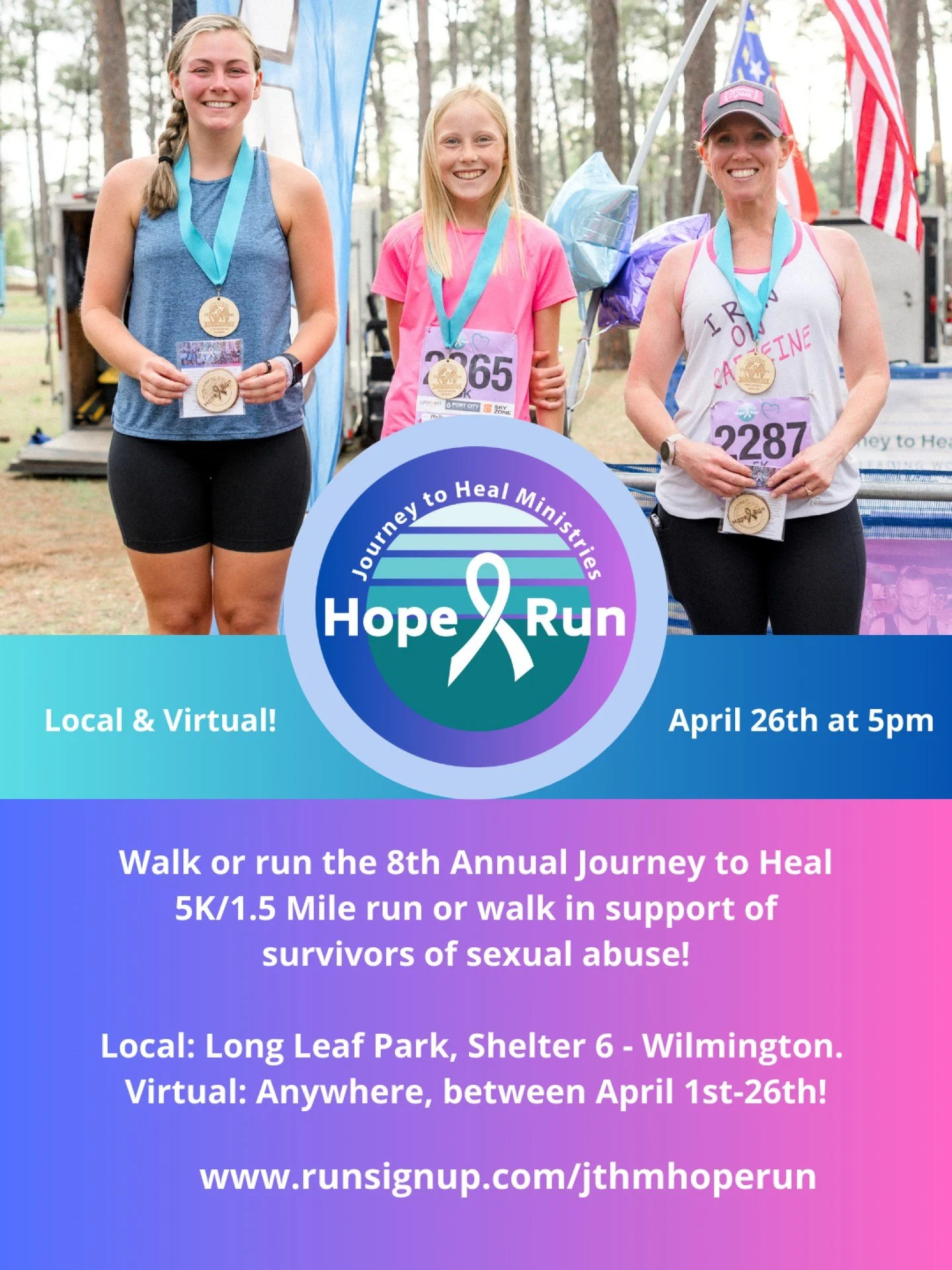Journey to Heal Ministries is a volunteer-run, 501(c)(3) nonprofit organization located in Wilmington, NC. 100% of all donations go directly to support our mission to love and empower women healing from past sexual trauma.